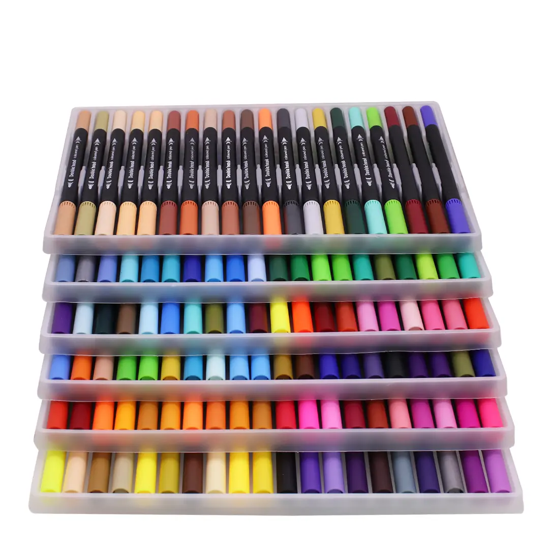 Set amplio de marcadores de colores pensado para dibujo, ilustración y trabajos creativos. Cada marcador cuenta con doble punta, permitiendo realizar trazos finos o más gruesos según el tipo de trabajo. La variedad de colores ofrece mayor libertad creativa, siendo una opción ideal para artistas, estudiantes y amantes de las manualidades. Su presentación facilita el orden y el acceso rápido a cada color.